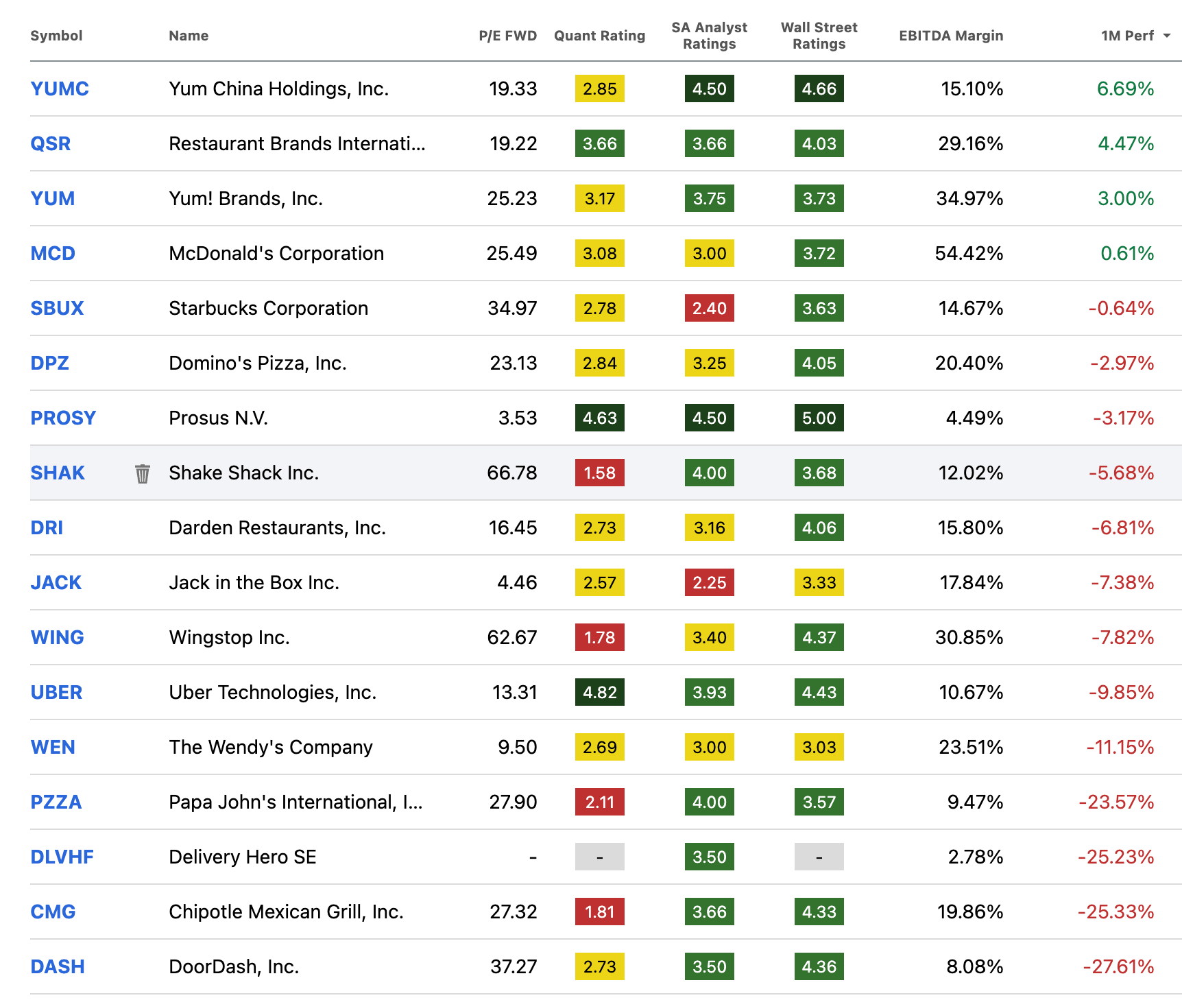Destacan las caídas de Wingstop, Wendy, Chipotle o Papa Johns. aunque muchas de ellas tenían multiplicadores muy altos