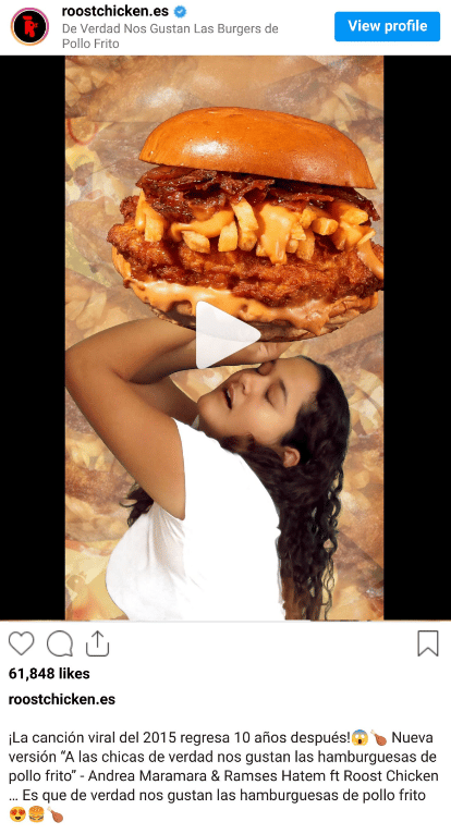 Campaña brillante de Roost Chicken al resucitar el video viral de “A las chicas de verdad nos gusta el pollo frito” Mantienen los cromas mal hechos, la musica cutre, las siluetas recortadas… sublime. Solo han decidido replicar la frase del video original “pollo, pollo, POLL&!” Os prometo que en el pasado varias veces me he preguntado por qué nadie lo había hecho. Era un oportunidad muy jugosa. Pues bien, Roost se adelantó. | ![]() |
